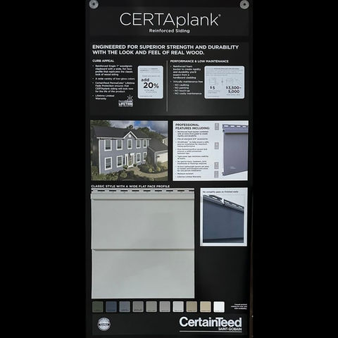 We sell and install CertainTeed siding. Call us to make an appointment to visit our siding display in our new showroom!